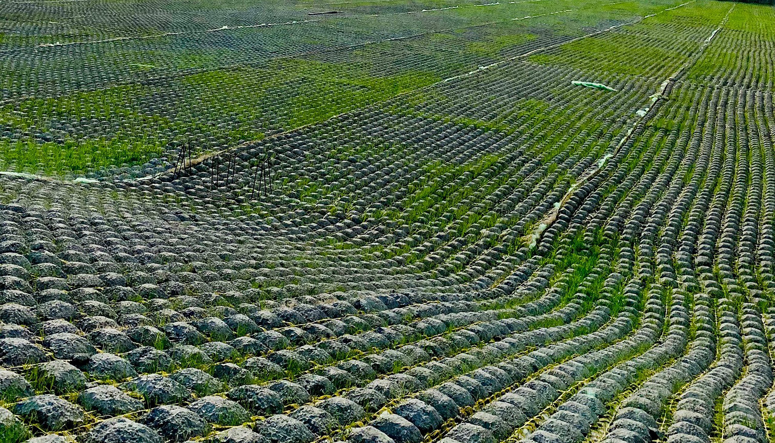 Vegetation started growing through the 1-inch gaps between the concrete blocks in the Flexamat before the installation was completed. Two years later, the Flexamat is fully vegetated, blending into the surrounding environment and providing resilient erosion protection.